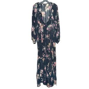 Free People Jumpsuit Floral Boho Whimsigoth Cottage Fairy Grunge Black Medium