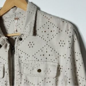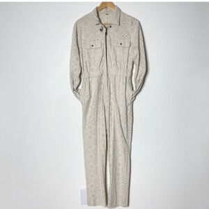 Free People Jumpsuit Set The Tone Eyelet Jumpsuit Ivory Bone Long Sleeve Zip Up Size 0/Small