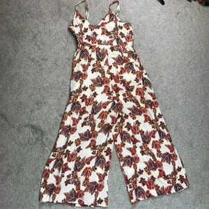 Free People Jumpsuit Wide Leg Crop Spaghetti Straps Button Up Sz 2