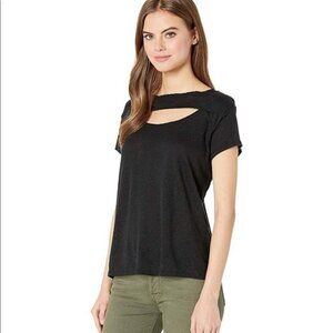 Free People june black linen cut out t-shirt. Good condition. NO TRADES.