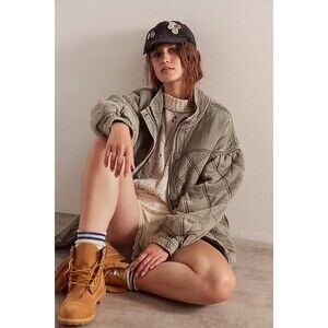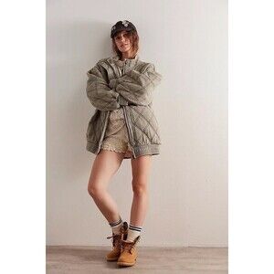 Free People Juno Quilted Jacket Top Bomber Oversized Buttondown Cotton XS 283320