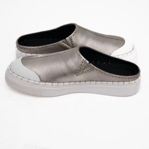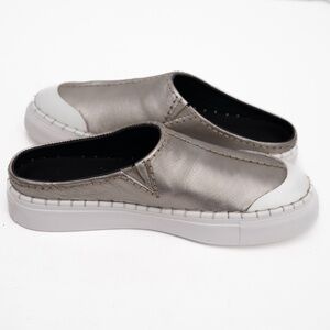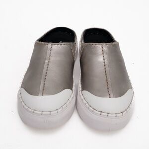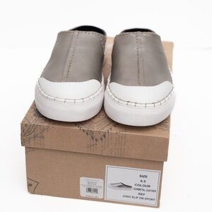 New in box, these Free People Juno Slip-On Sport Mules blend sporty ease with heritage craftsmanship. Made from supple gunmetal leather, they feature a rounded rubber toe cap, subtle seamed stitching, and a backless silhouette that slips on effortlessly. Perfect for casual days or travel, they balance comfort and chic edge in true FP style. Crafted from fine leather with a rubber sole for everyday wear.