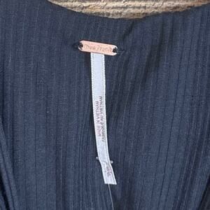 Free People Just A Fling Halter Tank Top Ribbed Bubble Hem Black Size Small