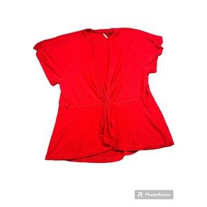 Free People Just A Twist Red Choker Neck Twist Front Short Sleeve Tee Size S