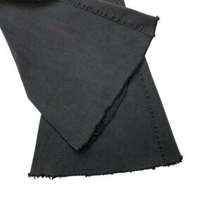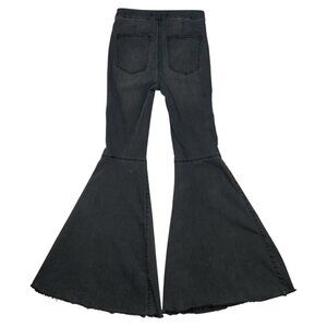 This Free People women's Just Float On Flare Jeans makes a statement due to it's flare bell bottom legs, high rise, zip fly with button, back pockets, stretch, full length, raw frayed cuffs and charcoal (wash black) washed denim.