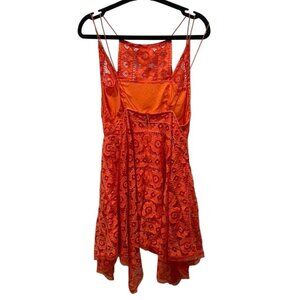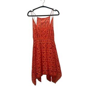 Free People Just Like Honey Lace Orange Handkerchief Hem Dress Sz 6 Summer Boho