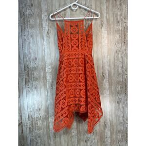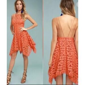 Free People Just Like Honey Mini Dress Size 2 Orange Lace Fully Lined Halter