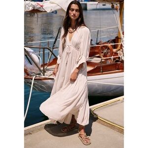 Free People Just Like Paradise Maxi Dress Summer Sundress Sleeves Cream