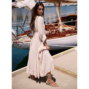 Free People Just Like Paradise Maxi Dress Summer Sundress Sleeves Cream
