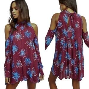 Free People Kaleidoscope Dream Tunic Top Blouse Micro Mini Dress S Cold Shoulder