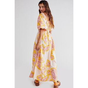 Be bold in this so special midi dress featured in a perfectly printed design with puffed sleeves, cutout detailing at sides, and textured center piecing for added dimension.