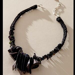 Authentic Free People Kalua Shell Necklace in Dark Shell. Unique statement piece with stacked natural shell design and braided detail. Adjustable length with silver-tone clasp.