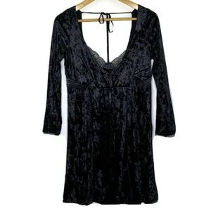 Free People Kat Faux Wrap Black Velvet Mini Dress