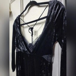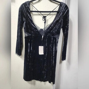 Free People Kat Velvet Mini Black Dress NWT Size XS Goth Dark Romantic