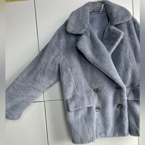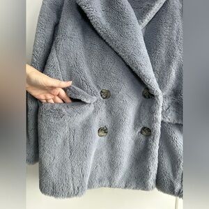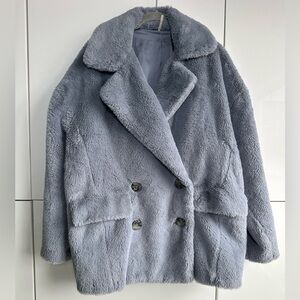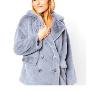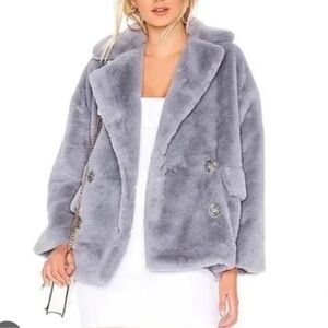 Free People Kate Faux Fur Coat Jacket Mob Wife aesthetic Gray Oversized Medium double breasted