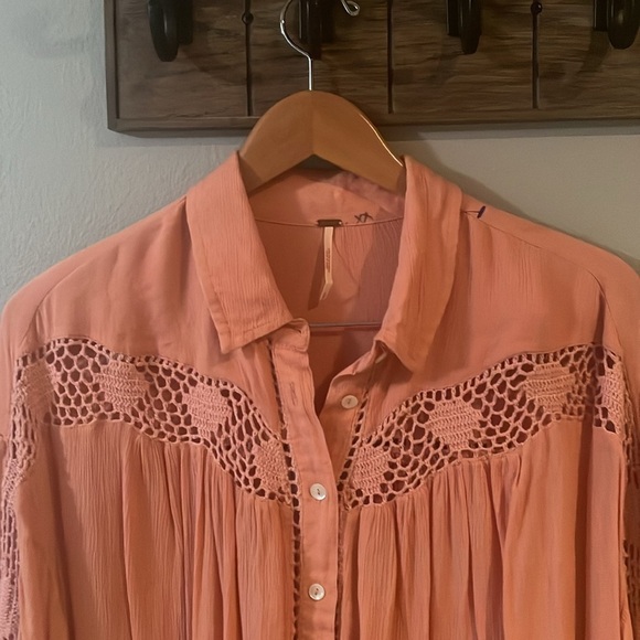 Free People Katie Bird Long Sleeve Blouse Peach size M