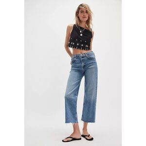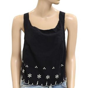 Free People Kayla Solid Embroidered Cropped Blouse Top Floral Cotton L 279922