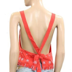 Free People Kayla Solid Embroidered Cropped Blouse Top Floral Cotton XS 278941