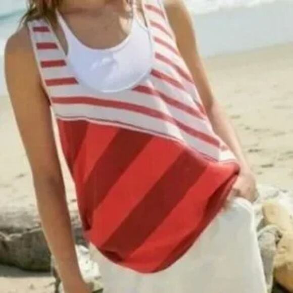 Free People Keep Rolling Tank Women's Printed Red/White Racerback Medium NWT