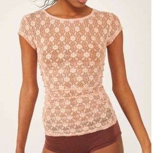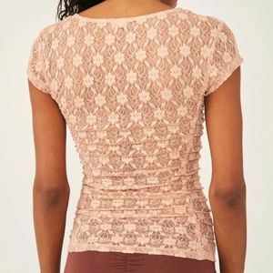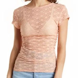 Free People Keep it Simple Ruched Lace Top Coral Sands
