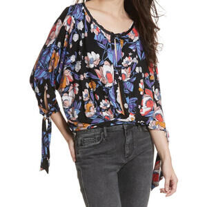 Free People Keepin' On Small Black & multicolored floral shirt