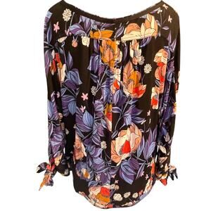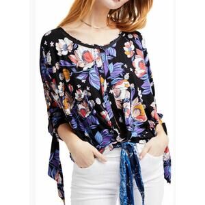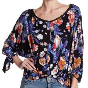 Free People Keepin On Top Womens Size XS Black Multicolor Floral Oversized Boho