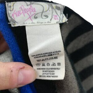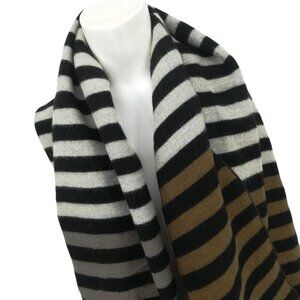 Free People Kellen Striped Scarf Wrap Oversized Fringe Brown Blue Gray Black