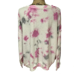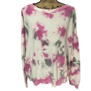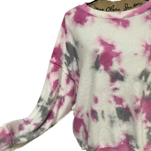 Free People Kelly Washed Tie Dye Sweatshirt Pink Grey Fuzzy Size Medium NWT