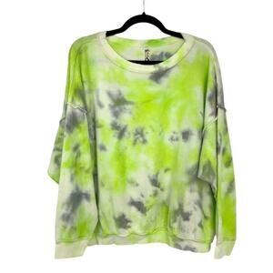 Free People Kelly Washed Tie Dyed Sweatshirt In Citron Gray & Cream Size XS NWOT