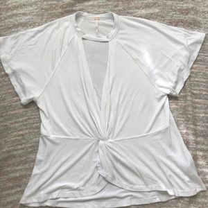 Twist up your casual style with this contemporary-inspired tee. Boasting relaxed raglan sleeves and a vivacious V-neck design that connects to a chic choker, this closet staple is one you'll dress up or down for any occasion.