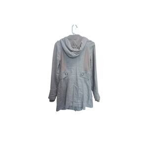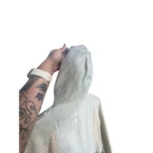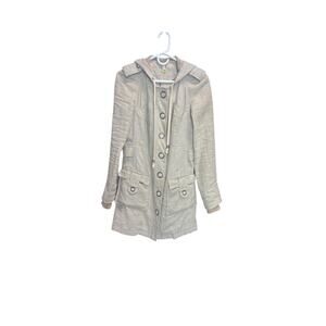Free People Khaki Long Hooded Ramie Coat Military Snap Sz4 W/ Pockets