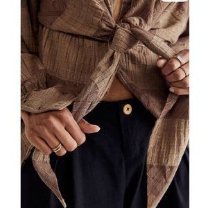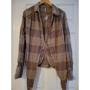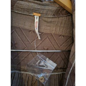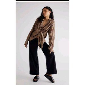 Free People Kiara Brown crinkle button tie front size small New without Tags
