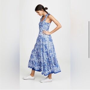 Free People Kikas Printed Maxi Dress in Floral Blue Combo Medium