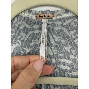This Free People kimono cardigan in size M/L blends relaxed elegance with signature boho flair. Designed in soft gray and cream tones, it features an open front, draped silhouette, and fringe hem detailing for effortless movement and texture. Perfect for layering over basics or dresses, this shawl-style piece aligns with bohemian, cottagecore, and coastal aesthetics—ideal for transitional weather, travel, or relaxed weekends.
