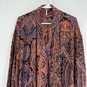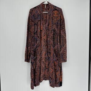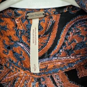 Free People Kimono Cardigan Womens Small Black Paisley Open Front Boho Duster