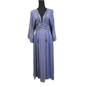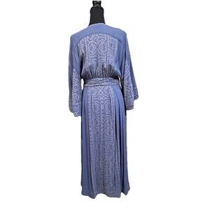 Free People Kimono Maxi Dress Denim Blue Size 6 Midi Boho Flowy Cottage