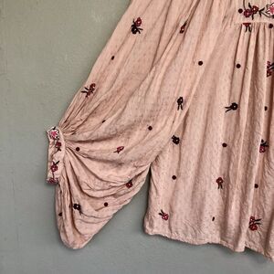 Free People Kiss From A Rose Tunic Top M Coral Embroidered Balloon Sleeve Boho