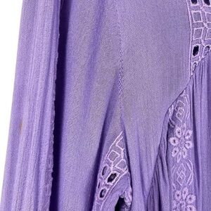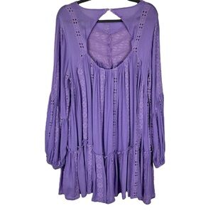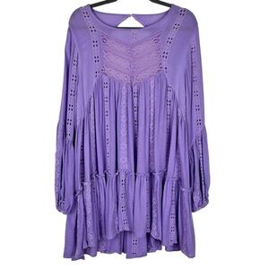 Free People Kiss Kiss Embroidered Purple Amethyst Eyelet Tunic Dress Size Medium