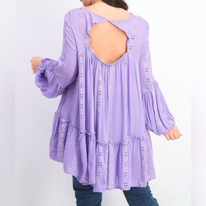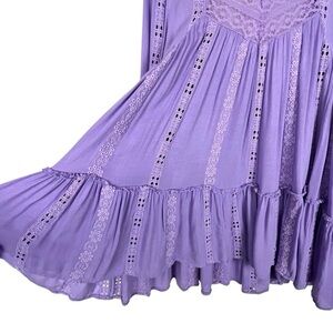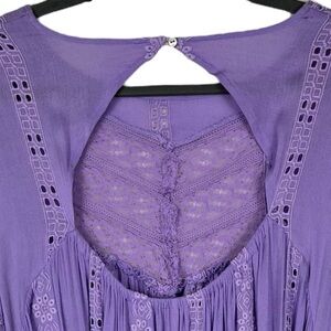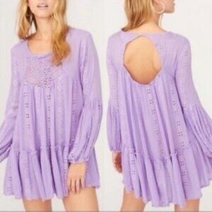 Free People Kiss Kiss Embroidered Purple Amethyst Eyelet Open Back Lace Inset Tunic Dress