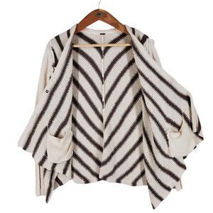 Free People Knit Cardigan Sweater sz S Beige Brown Striped Oversize V-Neck