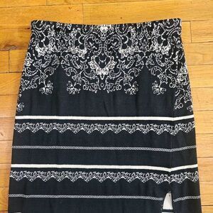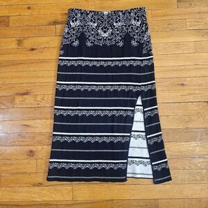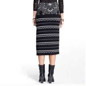 Free People Knit Pencil A-Line Midi Skirt Boho Black Embroidered Size M