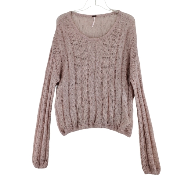 Free People Knit Sweater Top XS Angel Soft Frappucino Latte Mauve Drop Shoulder