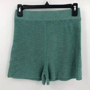 Free People knitted Malibu Surf shorts in pale green from the FP Beach collection. High waisted with a relaxed fit and foldable waistband for versatility.