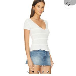 Free People “Krystal Tee” textured slim fit ivory V-Neck Top- NWOT