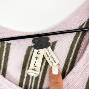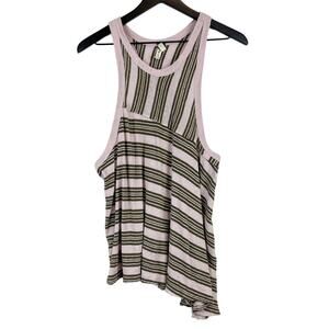Free People (L) High Neck Asymmetrical Stripe Tank Top Pink Green