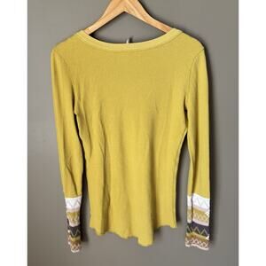 Free People L Kombucha Cuff Yellow Embroidered Boho Waffle Thermal Top FLAW