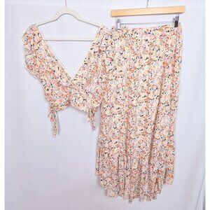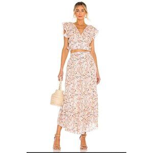 Free People L Pretty Daze Set in Ivory Combo Top And Skirt Two Piece Maxi Floral
