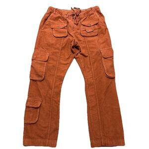 Free People L Tahiti Corduroy Cargo Pants Rust Orange Utility Pockets