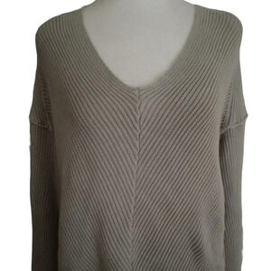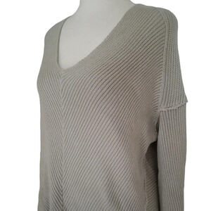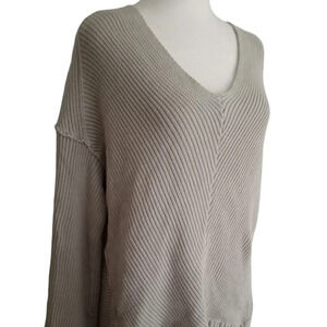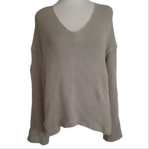 Free People La Brea Cotton V Neck Pullover Sweater Gray Size XS