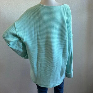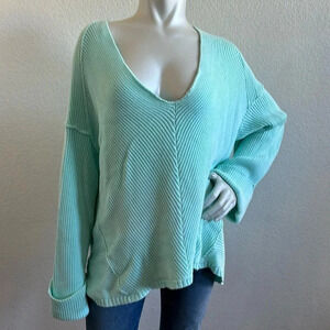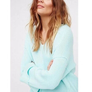 Free People La Brea Ribbed V-Neck Sweater Size Small Mint Aqua Blue